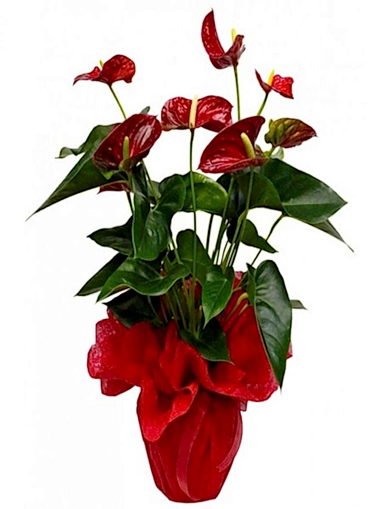 Antoryum çiçeği tropik çiçekli kalp şeklinde yaprakları olan 4 mevsim yaşayabilen şık bir salon bitkisidir.