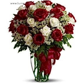 Cam vazo içerisinde 15 kırmızı ve 11 tane beyaz gül ile hazırlanmış sevdiklerinize gönderebileceğiniz harika bir aranjman