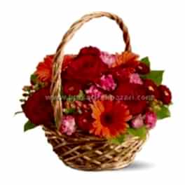 Sepet içerisinde gül gerberia ve kırçiçekleriyle hazırlanmış hoş bir aranjman.