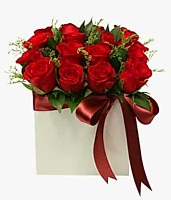Seramik vazoda 15 adet kırmızı gül ile hazırlanmış butik bir tasarım.